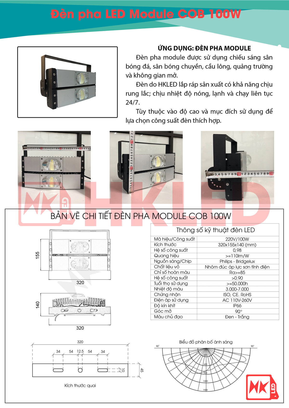 💡 Đèn pha bãi đỗ xe 100W HKLED: