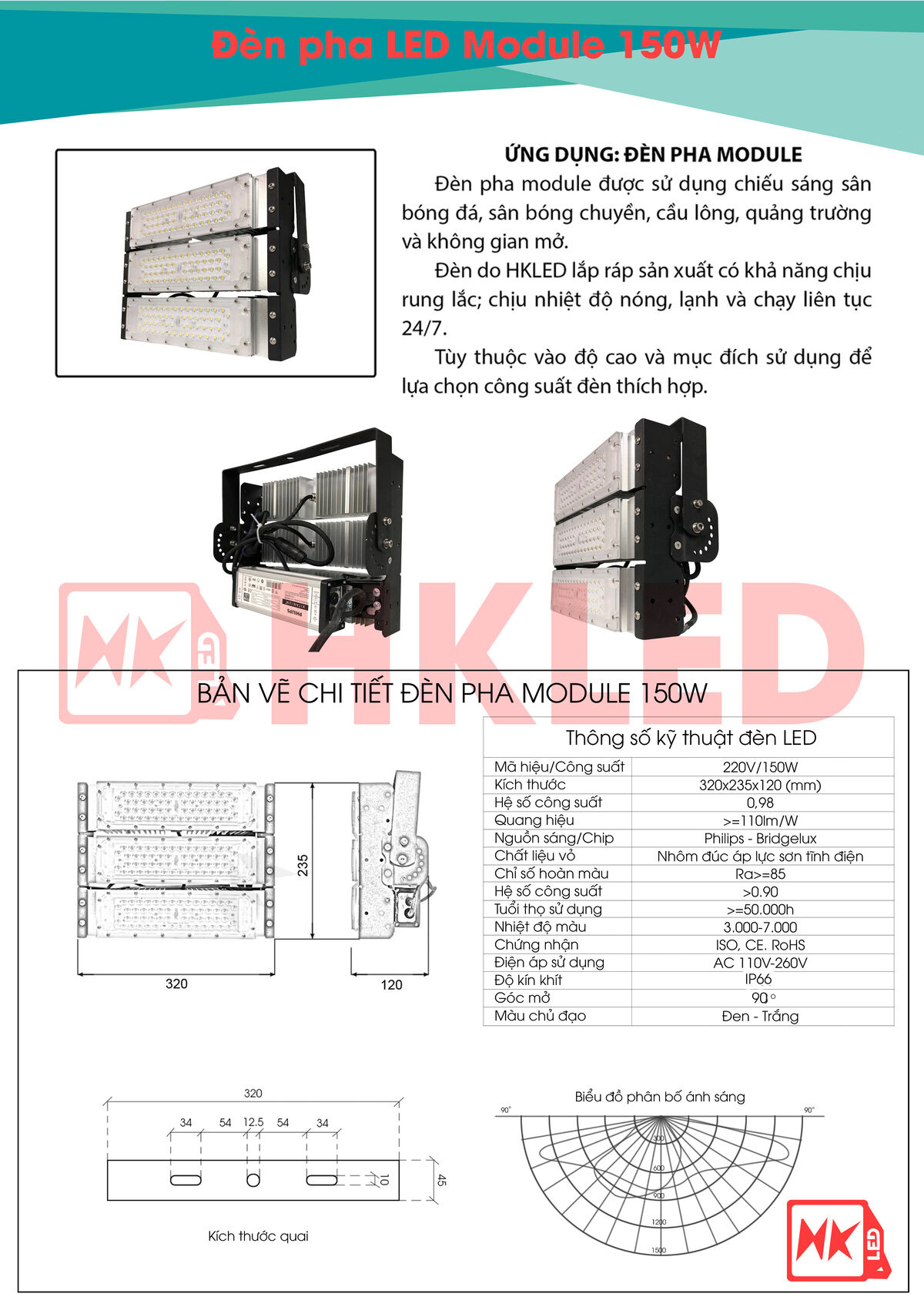 Đèn pha sân bóng đá 150W được lắp ráp từ những linh kiện nhập khẩu từ các thương hiệu hàng đầu thế giới như: Philips, Bridgelux, Done, Cree, Meanwell