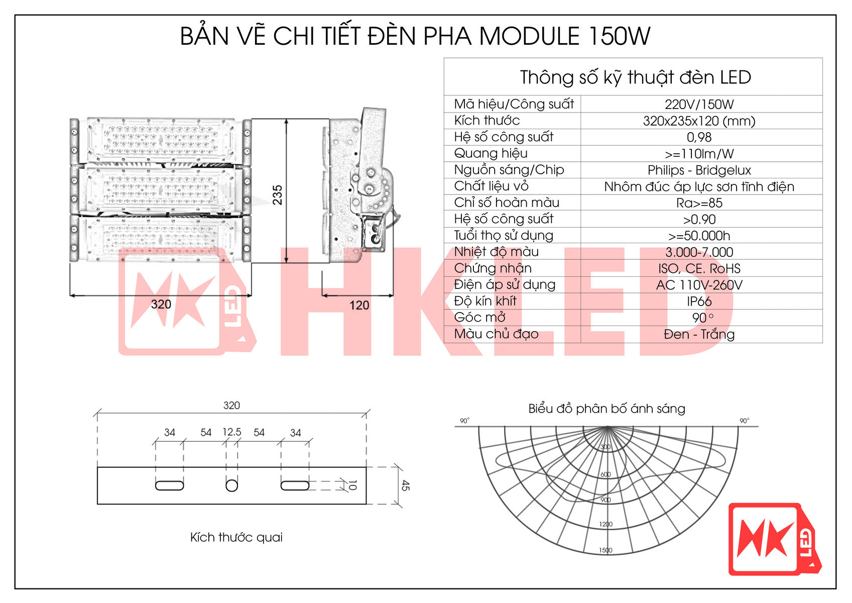 ✅Thông số kỹ thuật của đèn pha sân bóng đá 150W
