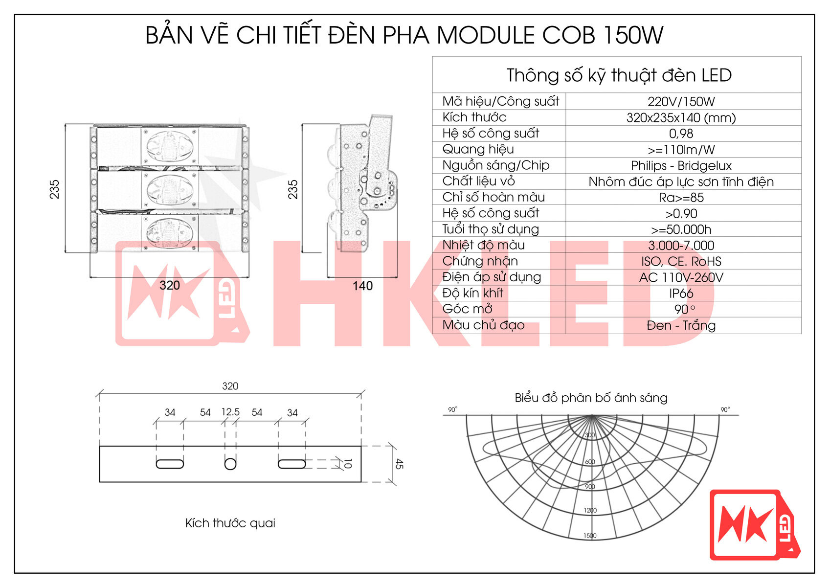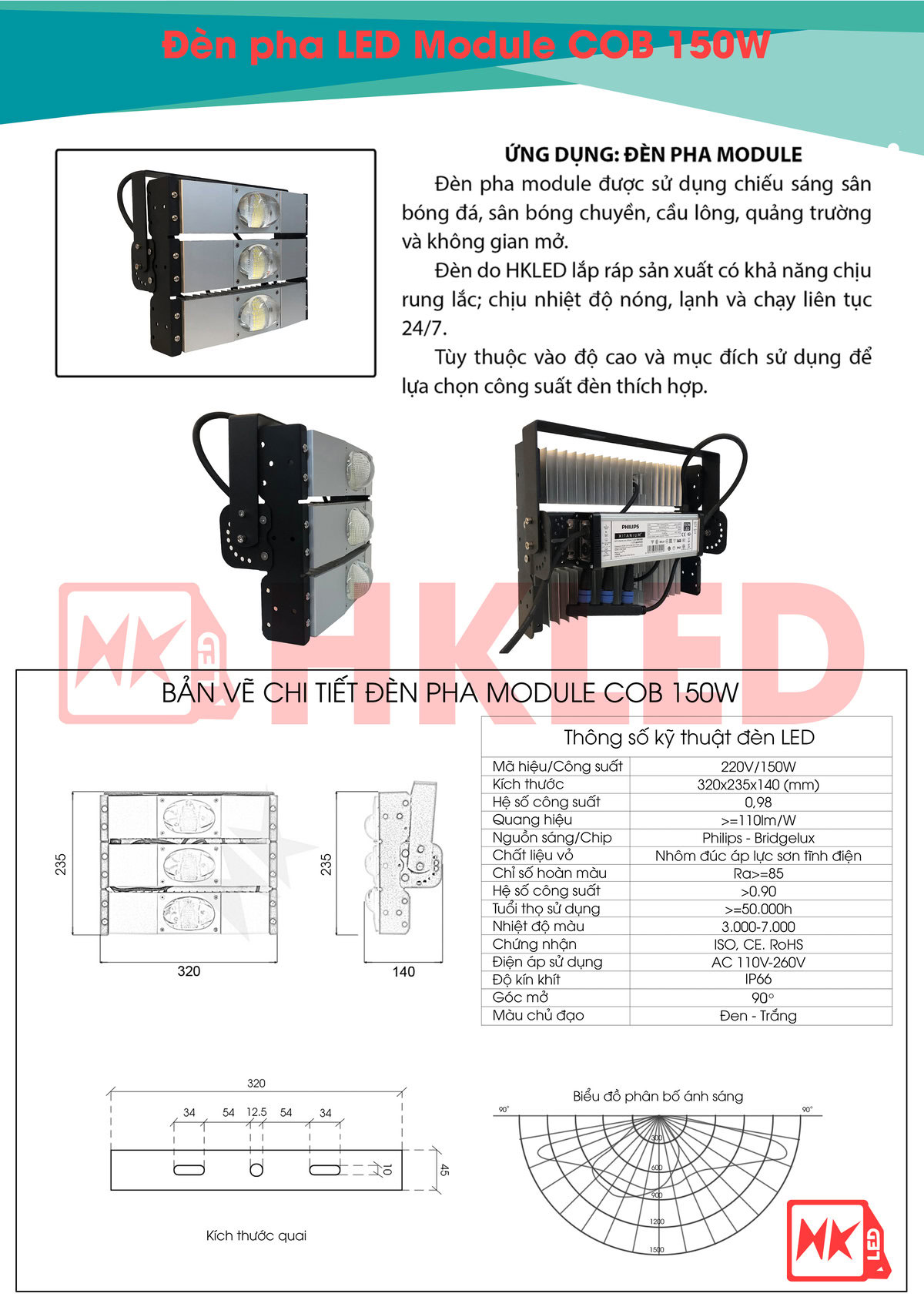 Một mẫu điển hình của HKLED: “Đèn pha sân bóng đá 150W – PTV / P03”