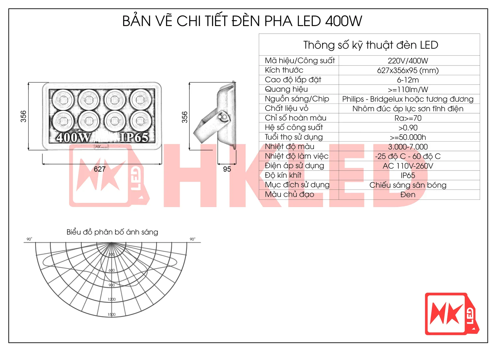 ĐÈN PHA SÂN BÓNG ĐÁ 400W – Thương hiệu HKLED