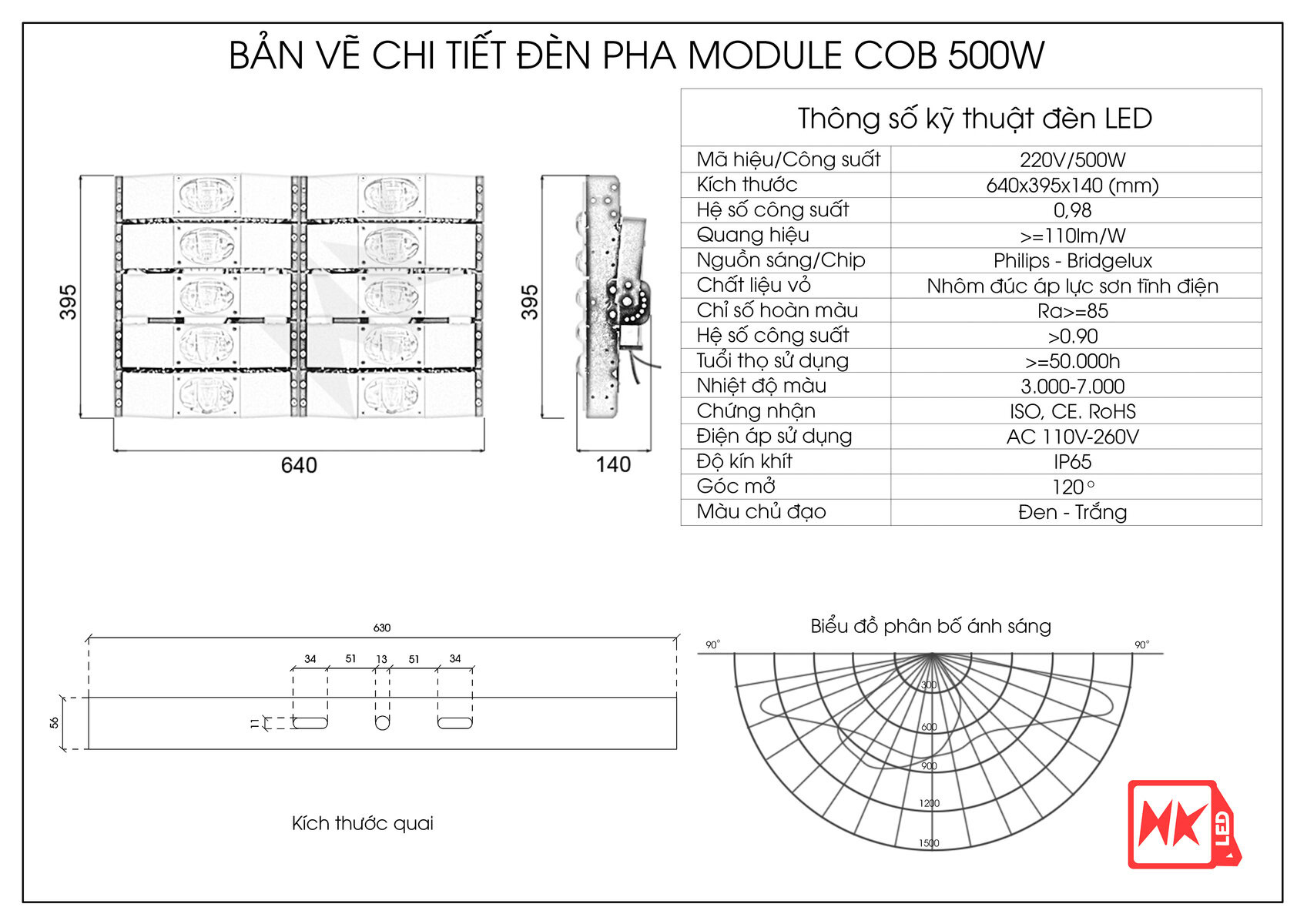 ✅Thông số kỹ thuật của đèn pha sân bóng đá 500W