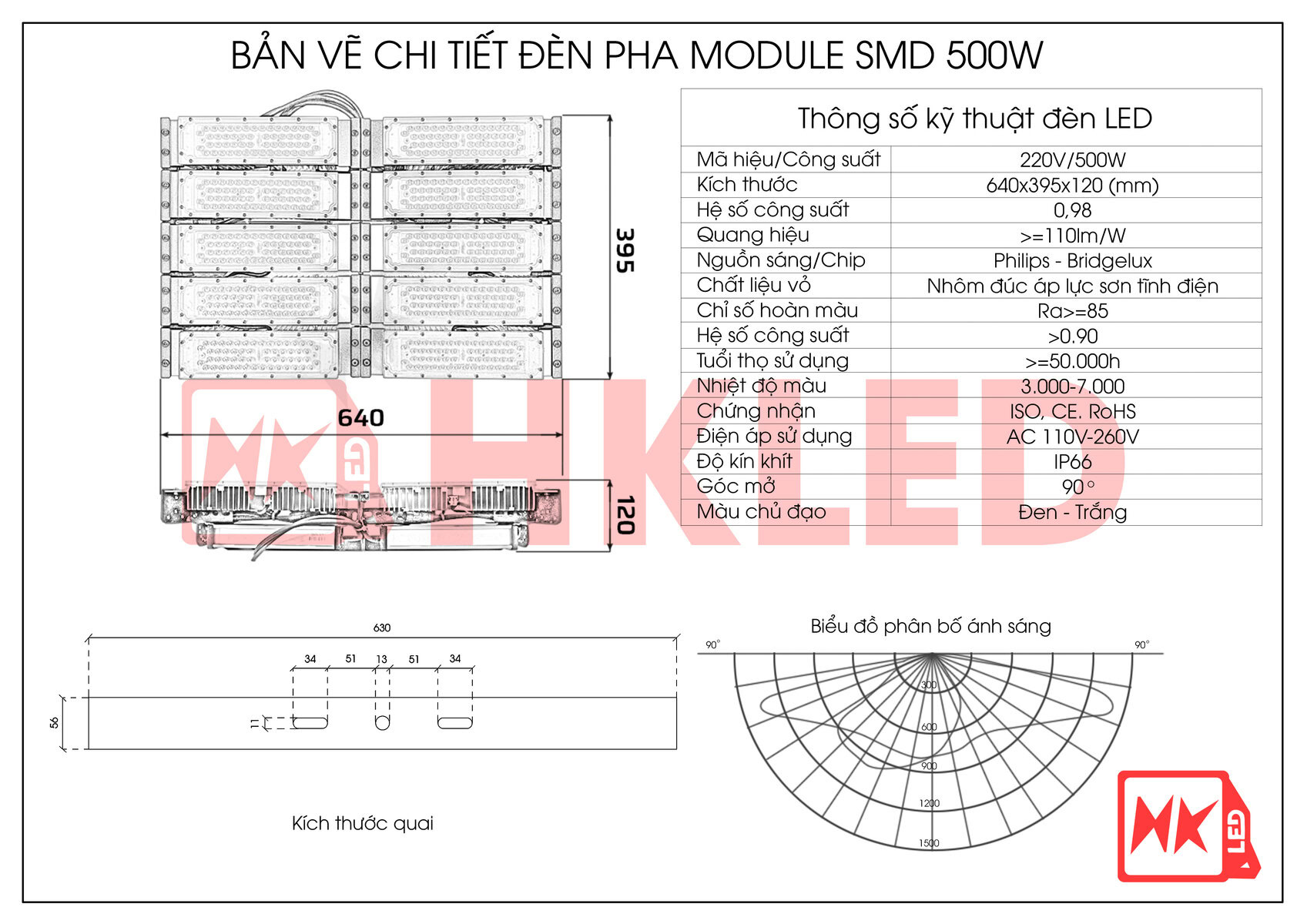 ✅Thông số kỹ thuật của đèn pha sân bóng đá 500W